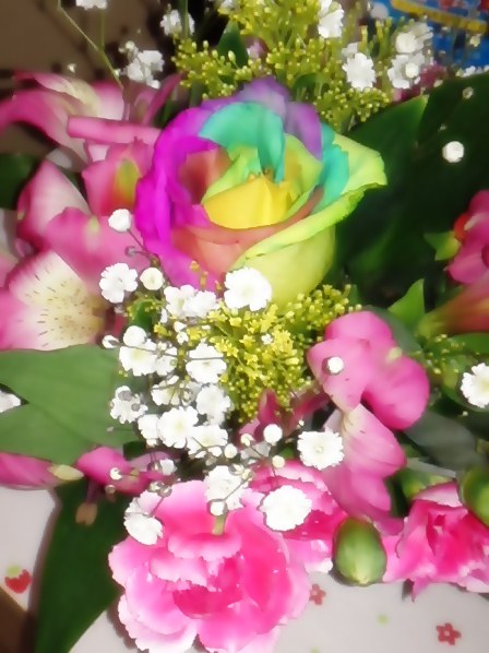 ってことでレインボーなお花買って帰ってきてしまった ƪ(΄◞ิ۝◟ิ‵)ʃ